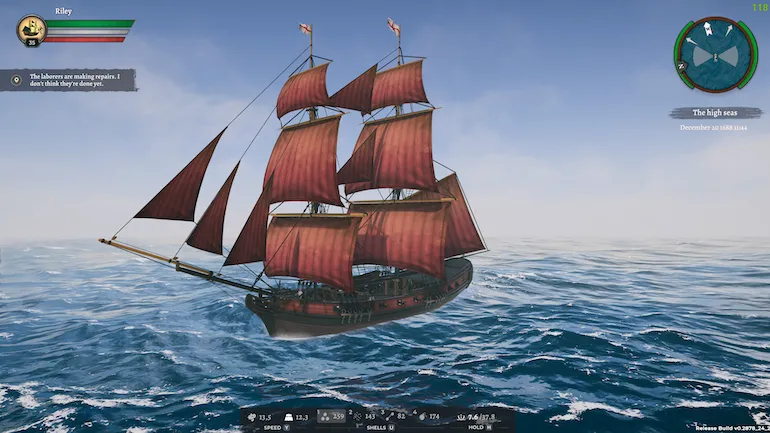 - A new ship model (brig) has been added, and the entire system of ship types has been redesigned. We have added trade and military modifications to each kind of ship, where the first has a more significant hold, and the second has a more robust hull, higher speed, and a larger crew. Thus, the game has 18 modifications based on six ship models, differing externally and in characteristics.