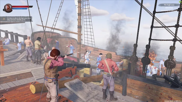 - Boarding has become more variable. We have added new options for the possible course of events on the deck: several options for combat in a surround where the team that is significantly smaller in number at the beginning of the boarding must defend; added musket firefight between ships; the ability for "captain vs. captain" fight in case of equal teams with a specific variability in the development of events. If the main character has a musket, he will be able to start the battle in the melee position and the musketeer position. Instead of the one default boarding, six strategies with 18 possible starting positions for the main character became available.